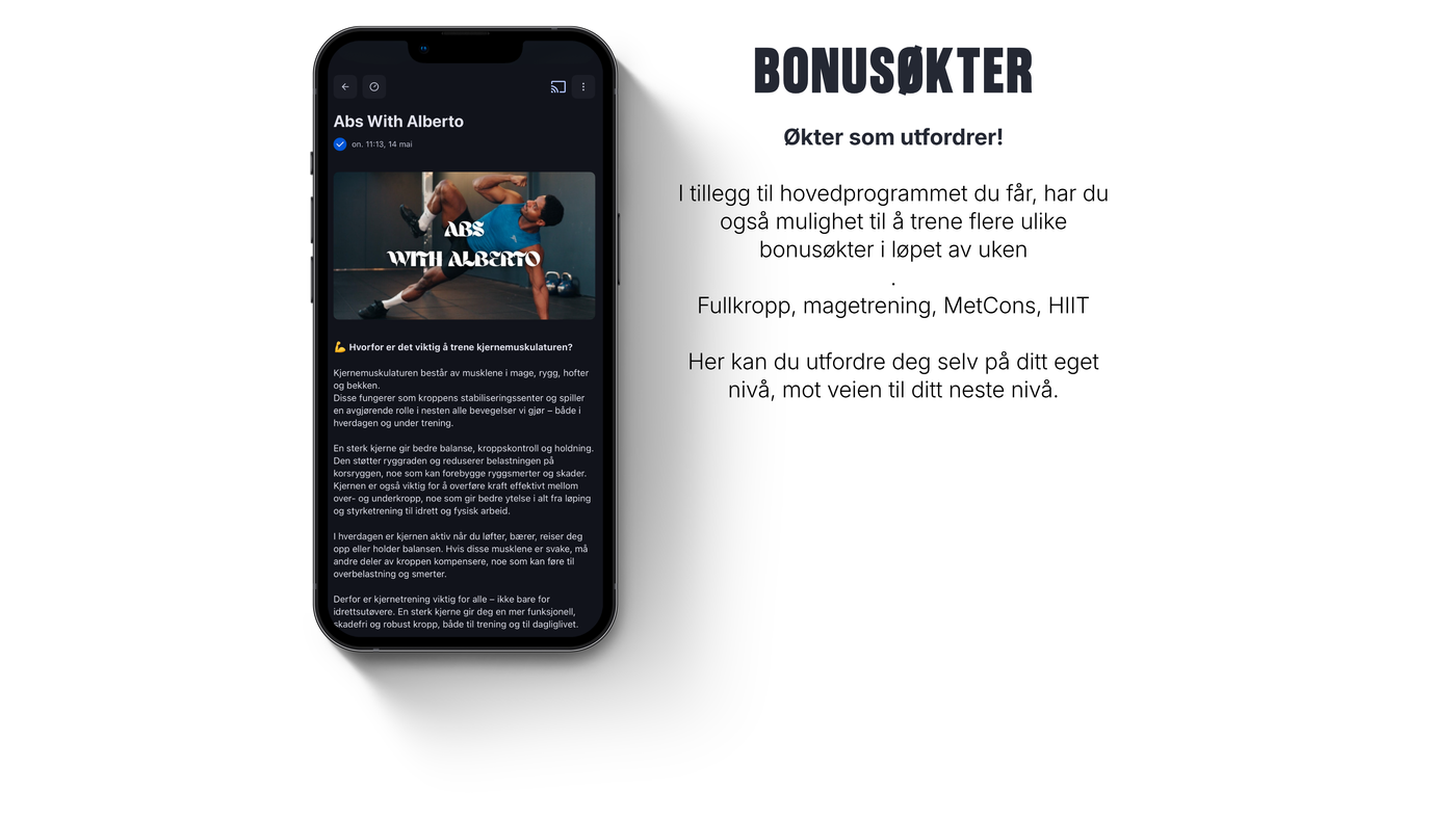 Min filosofi er enkel: Trening skal være bærekraftig, gøy og inspirerende. Sammen finner vi en rutine som gir deg både resultater og glede. Jeg ser frem til å hjelpe deg mot en sunnere og sterkere versjon av deg selv!
